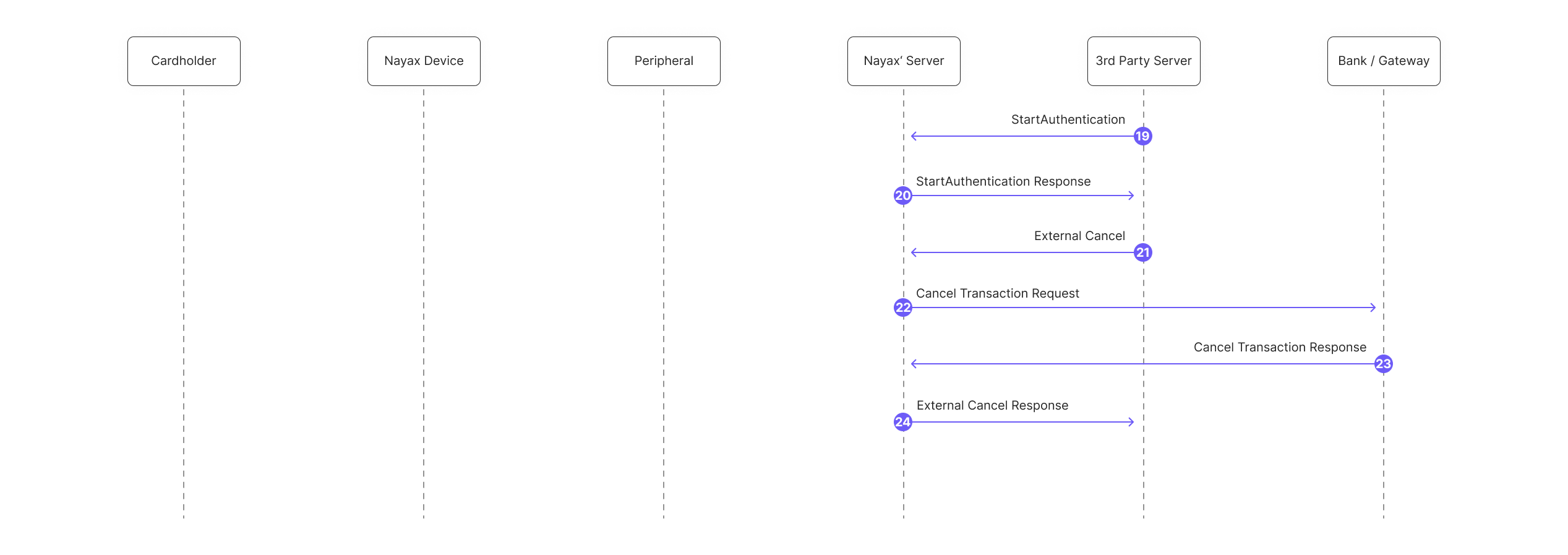 - Nayax's servers send an ExternalCancel response to the 3rd Party Server.