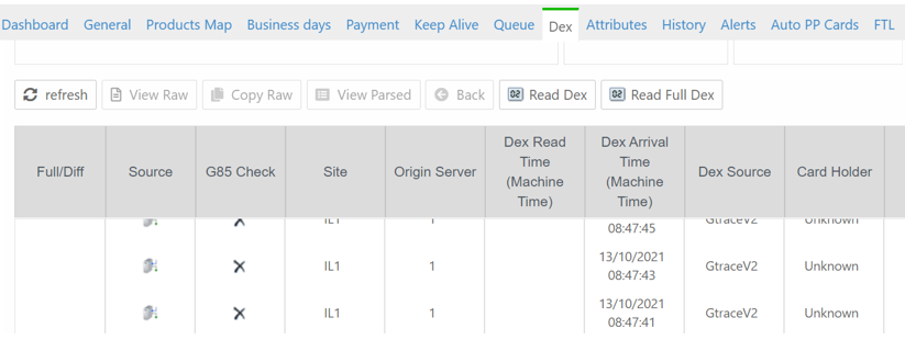 Once you've sent the request (whether it be from VPOST, Onyx, or VPOSM), you would see that under the "Dex" ta,b there would appear a new line/s in the table with the Dex Source of GtraceV2: