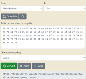 To have the brand selection screen start with, the device must be configured to Always Idle (since regular Preselection shows animations after a product is selected and cannot display brands). After I've selected a product, then the brand/channel and the QR appeared on the VPOST's screen- it also appeared in the SDK's log. The string appears in Hexa, so there's a need to convert it to ASCII in order to get the URL. For example: https://www.rapidtables.com/convert/number/hex-to-ascii.html