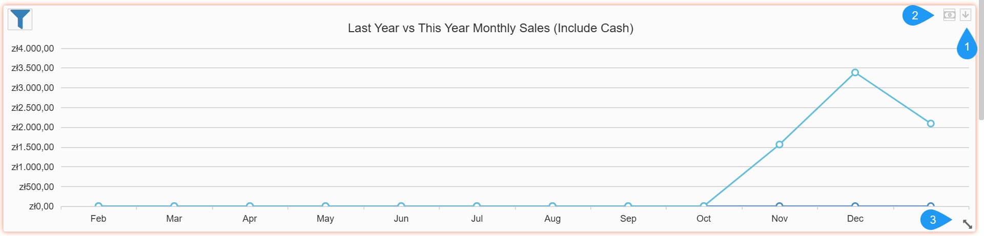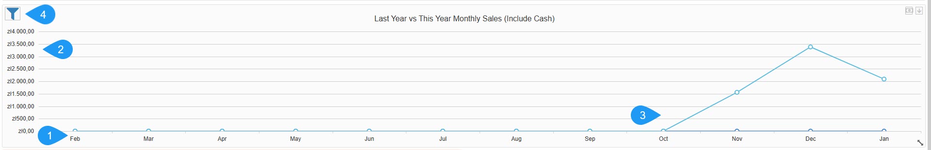 - Revenue Scale (Y-Axis): Shows the total value of sales in the local currency, such as zł - Polish złoty.